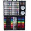 • Contenido: 113 piezas, entre ellas marcadores al agua, crayones de cera, lápices de colores, acuarelas, pincel, goma de borrar, sacapuntas, regla, pegamento, lápiz negro, tijera, postales ilustradas.